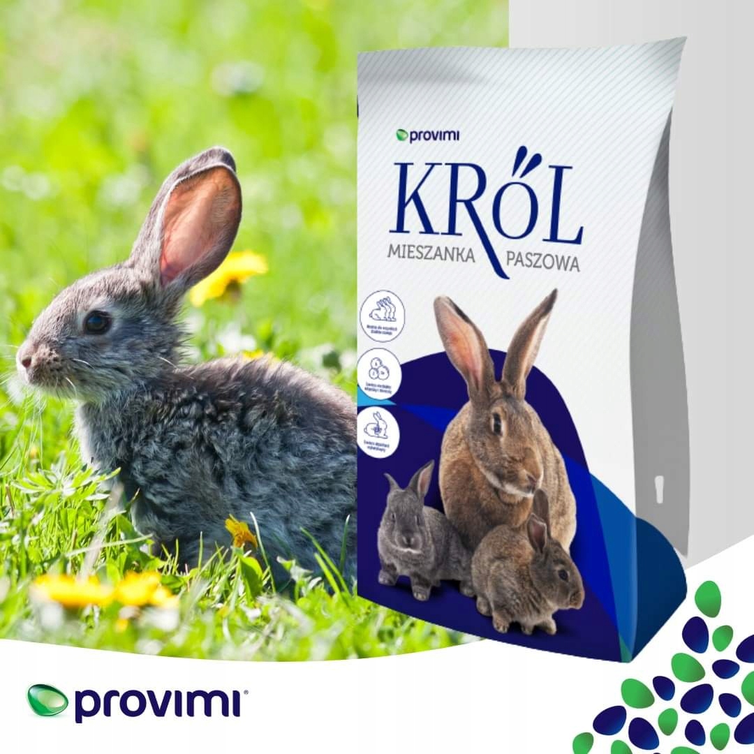 KRÓL KRÓL BEZ KOKCYDIOSTATYKU PROVIMI– Mieszanka paszowa pełnoporcjowa dla odsadzonych królików, króliki w okresie tuczu, młodych królików, matek karmiących i kotnych, samce i samice nieproduktywne.